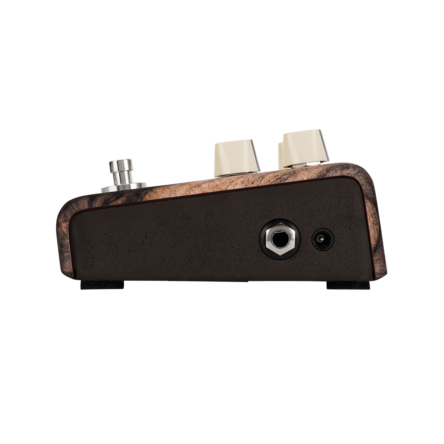 エレキ用のコーラスのような派手な掛かり方ではなく、元のアコースティックなサウンドをさりげなく豊かにするような今までにないコーラスです。L.R.Baggsの回路の純度と再度チェーンのシンプルで直感的なコントロール類により、心地よい効果を素早く簡単に設定できます。独自の「サイズ」コントロールは、ノブを回すと相互に作用する2つのコーラス音をブレンドします。さらに、トーンコントロールはエフェクト信号のみに掛かるので、楽器に最適なバランスで調整することができます。